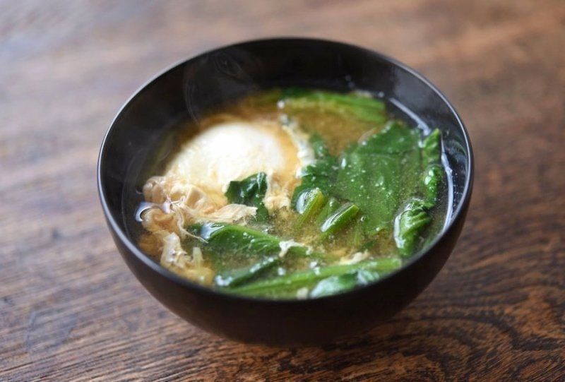 ほうれん草をたっぷり手軽に食べたいときは、だしとみその風味豊かなおみそ汁にしましょう。ほうれん草と相性抜群の卵と組み合わせることで、ほうれん草を別ゆでしなくても、まろやかで飲みやすく仕上がりますよ。