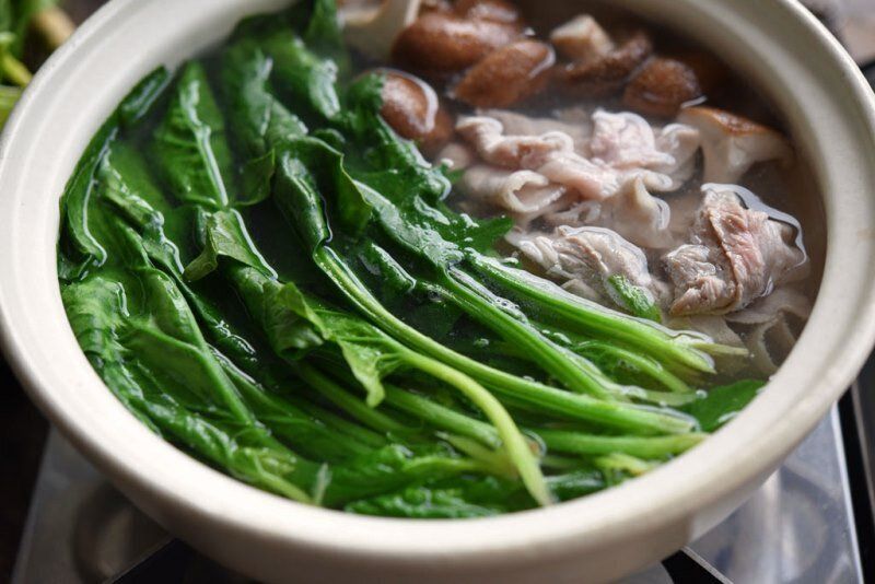 ほうれん草をたっぷり食べることができる、冬の定番鍋レシピ。熱々のほうれん草とつけダレが、じゅわっとおいしい一品です。刻みねぎや大根おろしなど、好みの薬味で味に変化をつけながら食べると◎。