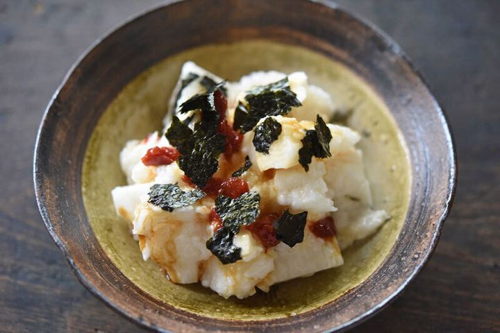 長いもを使ったもちもち食感の豆腐もつくれますよ。豆乳などの材料を混ぜ合わせたら、あとはレンジにおまかせするだけ。あと一品つくりたいときにぴったりな小鉢料理です。