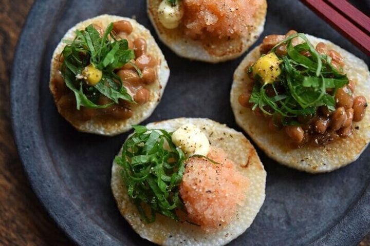 お酒のおともに最適な、長いもを使った簡単おつまみレシピ。軽く焼いた長いもに、明太子や納豆・お好みの薬味などをのせるだけ。彩りも華やかになるので、いろいろな薬味をそろえて組み合わせるのがおすすめです。