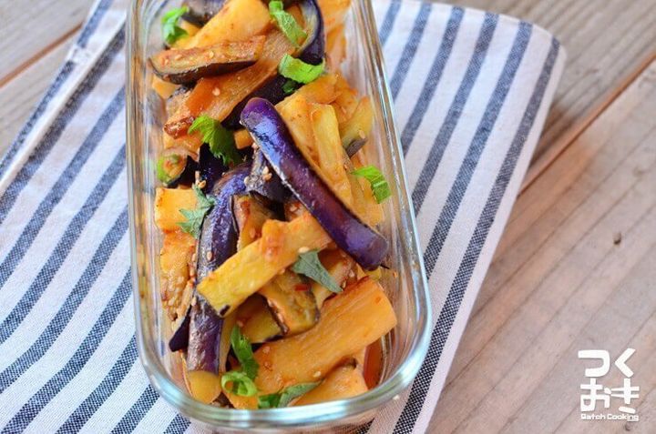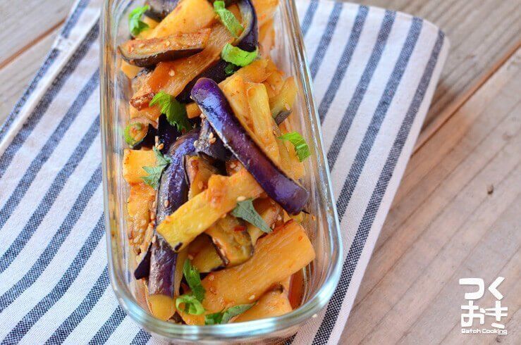 なすと長いものピリ辛揚げびたしは、お弁当のおかずにもぴったり。長いもをしっかり焼くので、“ねばねば”ではなく“ほくほく”な食感に仕上がります。大葉の彩りがきれいですね。