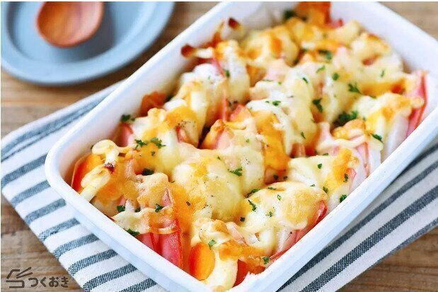長いものホクホク感を生かせば、手が込んで見えるグラタンも簡単につくれます。ホワイトソース不要で、家にある調味料でつくれるので、買いものに行く時間がない日でもOK。チーズの香ばしさと塩気が食欲をそそる一品です。
