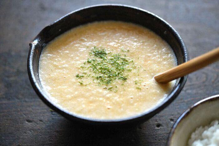生で食べてもおいしい長いもをすりおろしたみそ汁レシピです。煮込む必要がないので、調理は短時間で◎。トロトロな仕上がりに体も心も温まりそう。最後にゆずの皮をのせるのがおすすめ。