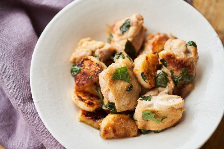 角切りにした長いもを入れた鶏つくねは、ボリューム満点の一品。甘辛いタレで、ご飯が進むおいしさです。俵型に成型するときは手にサラダ油を塗っておくと、手にくっつきにくく成型しやすくなりますよ。おかずにもお酒のおつまみにもぴったり。
