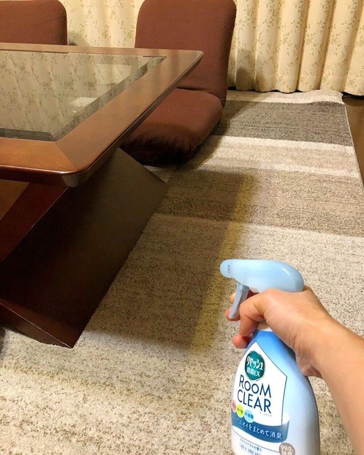 高い除菌力を発揮する「リセッシュ除菌EX ルームクリア」。布製ソファやラグマットを使用している家庭なら、消臭&除菌で一石二鳥。家事もラクになりそうです。