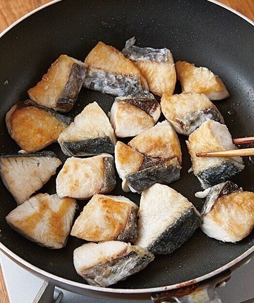 魚は先に両面を焼いておくと炒めてもくずれず、香ばしさも加わりおいしい炒めものに。