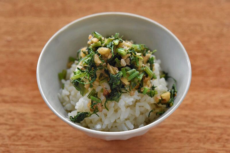 一般的な手づくりふりかけは、じゃこやかつお節、ごま油などを合わせることが多いですが、食材の組み合わせを変えて、独特の風味のにんじんの葉をいかしたふりかけです。ご飯にかけるだけでなく、おにぎりにしてもおいしいです。