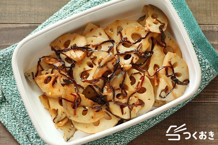 れんこんの塩こんぶ和えはお弁当やおかずにおすすめの料理で、子どもでもおいしく食べることができます。