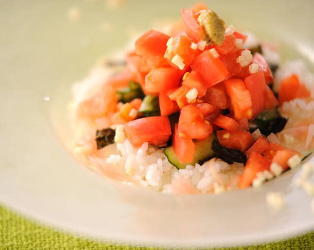 トマトをよりさっぱりと食べることができる「トマトのおろしショウガ和え」。皮をむいたトマトにすりおろした生姜、甘酢を混ぜて完成です。サッとつくれて、食欲がないときにもおすすめのメニューですよ。