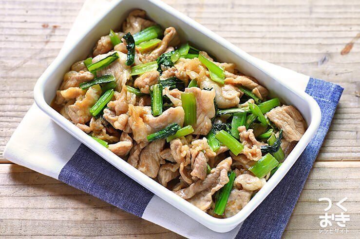 生姜がきいた甘辛い味つけでご飯が進む、豚肉と小松菜の炒め物。野菜と肉を、同時にたっぷり食べられるのがうれしいですね。汁気をしっかり切れば、お弁当のおかずにも◎。
