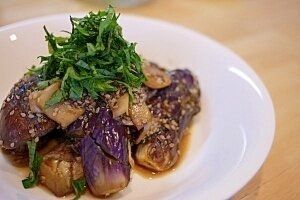 弁当や酒のおつまみにもぴったりの、なすとエリンギの生姜焼き。なすとエリンギの食感の違いを楽しめる一品です。生姜ときざみ大葉の風味が、いいアクセントになっています。