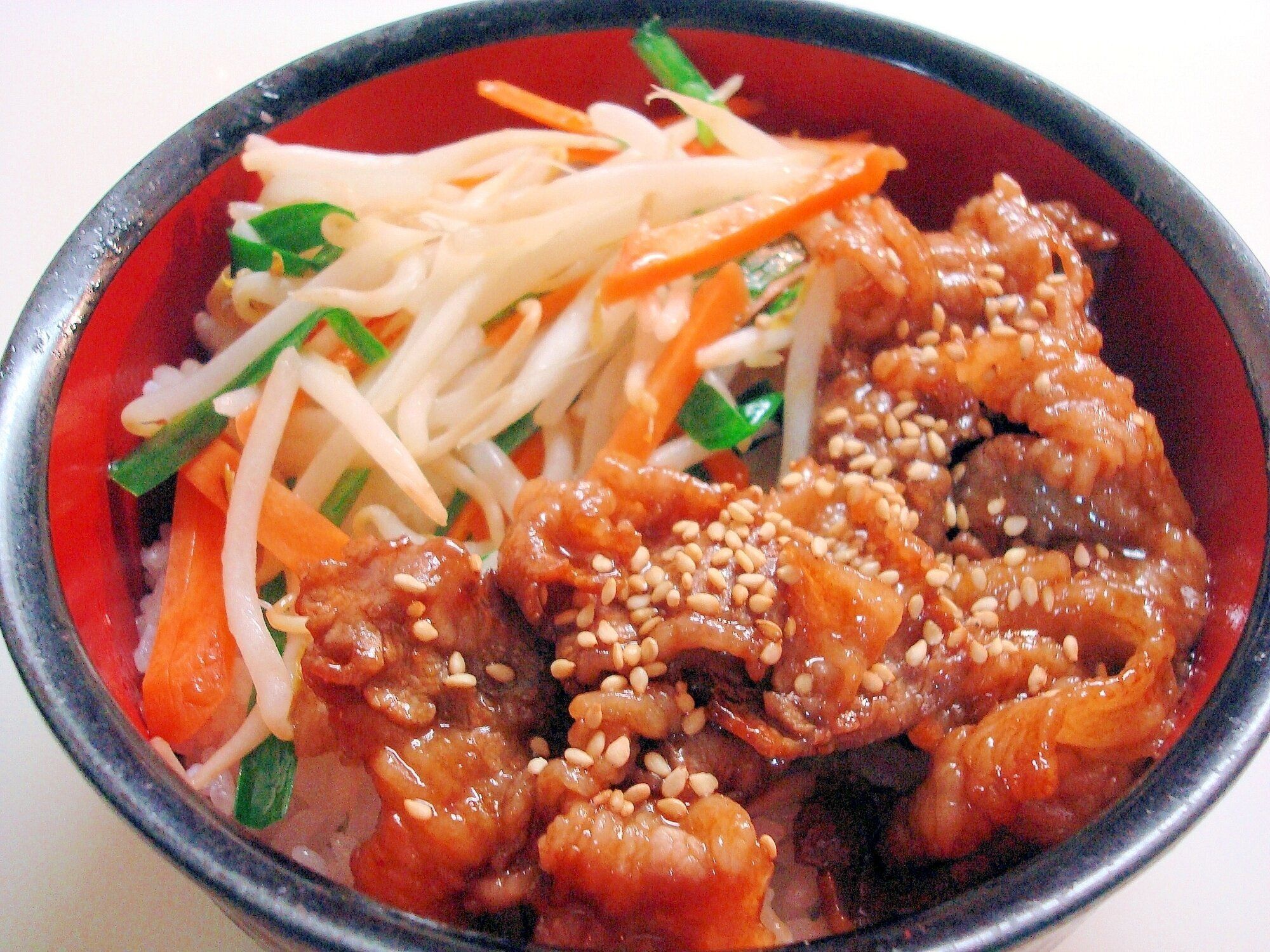 具だくさんのビビンバ丼レシピ。焼肉のタレで味を調えることで、味つけも簡単ですよ。ニラとにんじんで彩りも◎。焼肉風味のどんぶりなので、お箸が止まらなくなりますね!
