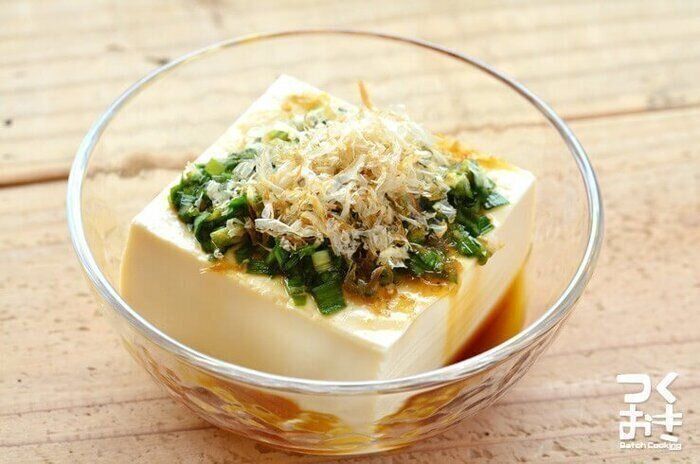 カリっと焼いた厚揚げに、ニラじょうゆをかけて仕上げる一品。副菜にはもちろん、おつまみにもピッタリなメニューです。ニラじょうゆはカルシウムやビタミンも豊富で栄養面でも安心できますね。