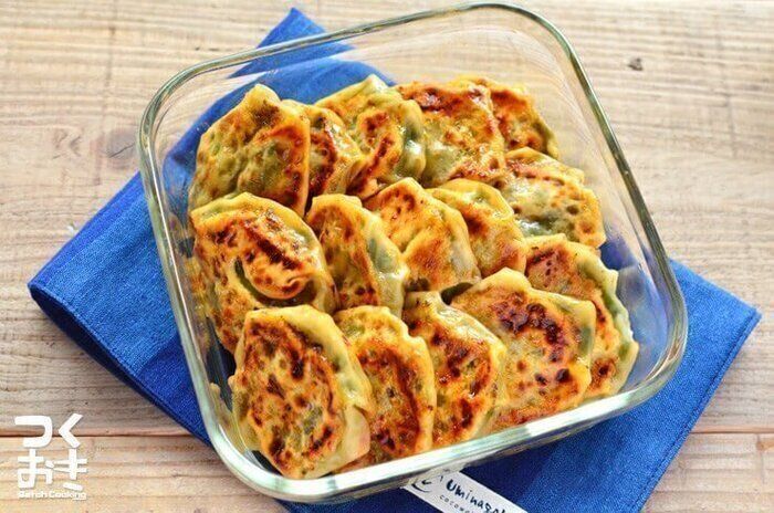 ひき肉ではなくツナ缶を使って簡単につくるツナマヨとニラの餃子レシピ。ツナマヨと刻んだニラを餃子の皮で包む、変わり種餃子です。焼くときは、焦げ目をしっかりつけるのがポイント。