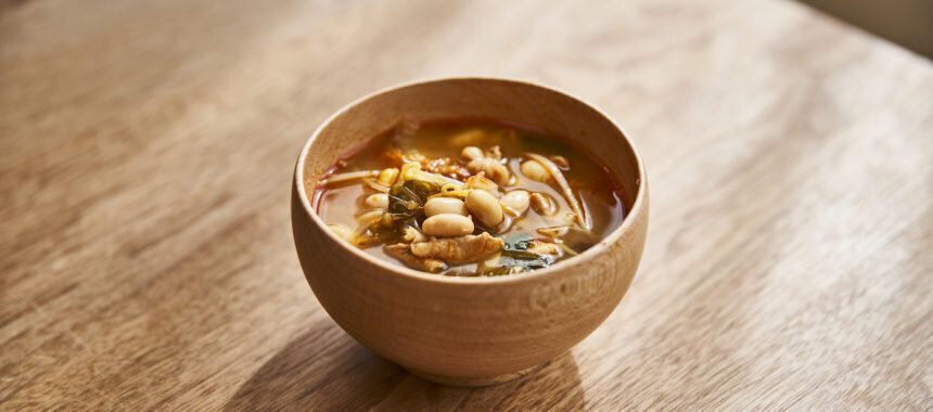 栄養がたっぷりつまったチゲスープのレシピです。豚バラ肉やニラ、大豆など具材が豊富で食べ応えがあります。ほうれん草やねぎなど、野菜はお好みで変えてもおいしいですよ。