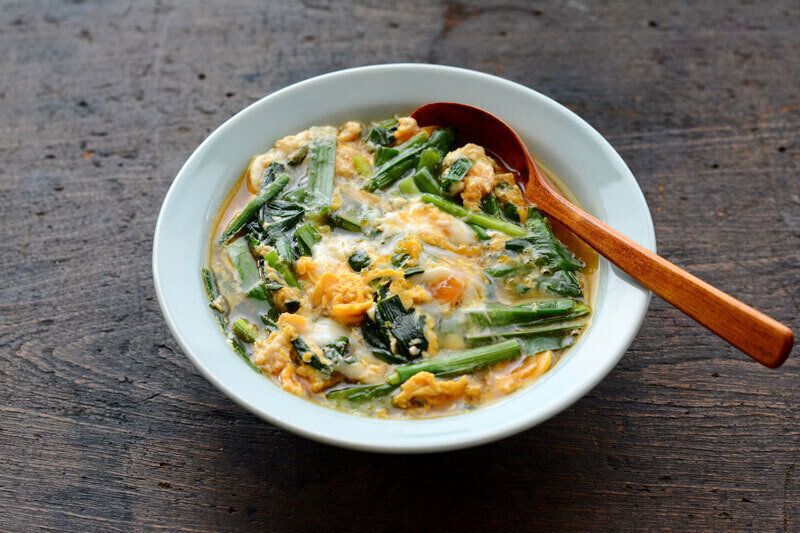 奥深いうまみでまろやかな味わい!にらとベーコンの卵スープ