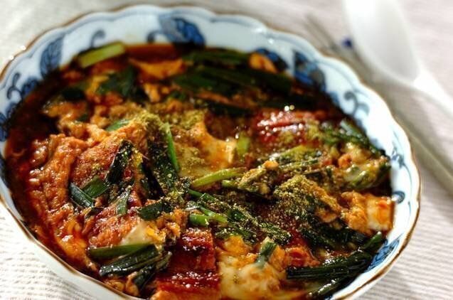 「ニラの柳川風」は、スタミナたっぷりのメニュー。ニラとごぼう、鶏もも肉をメインに煮汁で煮立たせて完成です。ご飯との相性も抜群なので、ぜひ合わせて食べてみてくださいね。