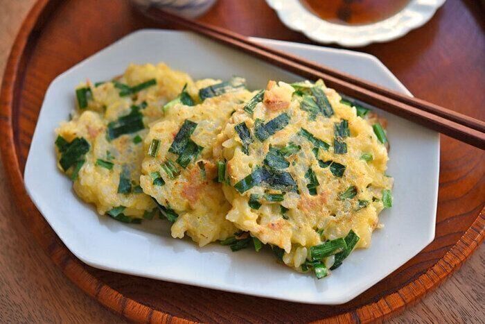 おつまみや子どもに野菜を食べさせたいときに重宝する、じゃがいもとニラのチヂミ。外はカリッ、中はモチッの食感が楽しめます。じゃがいもは表面のでんぷん質も利用するので、水にさらさなくてOK。お好みのタレにつけて召し上がれ!