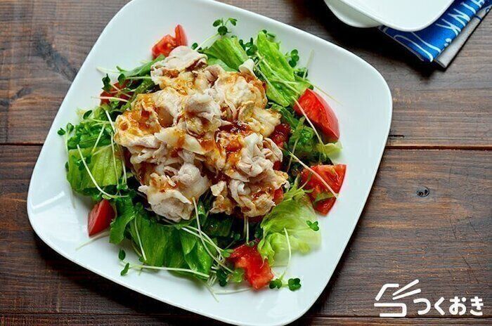 レタスをたっぷり食べられる、レタスの豚しゃぶレシピ。市販のポン酢を使うので味が簡単に決まります。さっぱりと食べられるので、食欲がない日にもオススメ。豚肉をゆでるときは臭みをとるため、一緒に酒、塩を加えましょう。タレの味もよくなじみますよ。