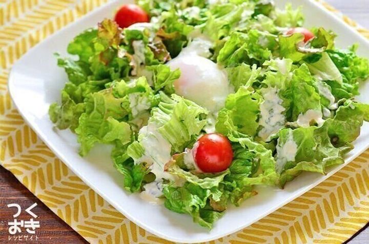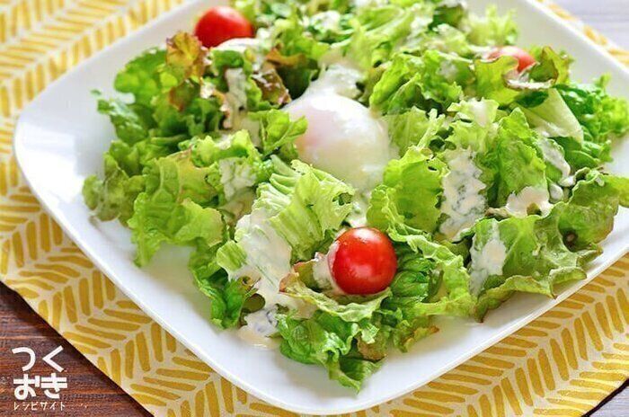 定番のシーザーサラダドレッシングを、家にある調味料でつくれるレシピ。トッピングは温泉卵のほかに、ベーコンやクルトンを追加しても◎。しっかりと水気を切ることが、サラダをおいしくつくるためのコツです。