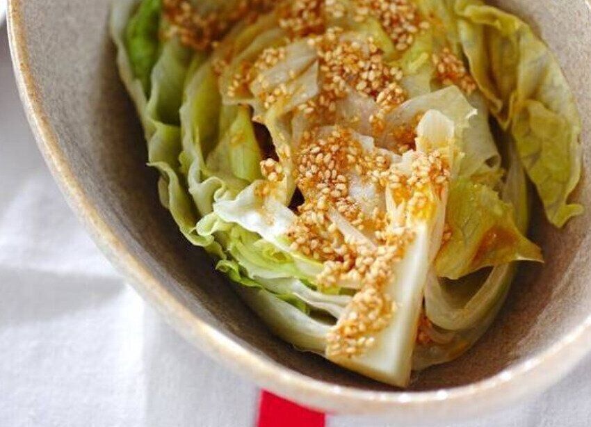 たっぷりのレタスを芯までまるごと調理して食べやすく、野菜をたっぷり食べられる、レタスのゴマポン酢がけです。電子レンジで簡単につくれ、レタスの甘みが増すので一気に完食できますよ。和食の副菜や一品料理に◎です。