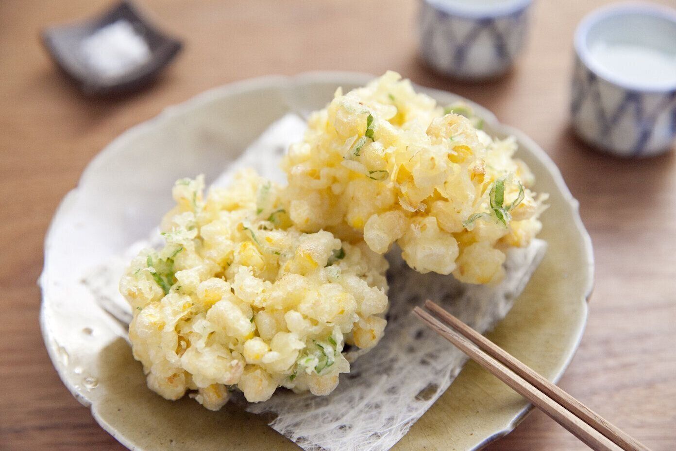 生のとうもろこしを使った、かきあげのレシピをご紹介。とうもろこしだけでもおいしいですが、大葉を入れることでさわやかな風味に仕上がります。塩で食べるのがおすすめです。