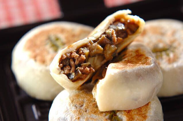 合いびき肉やナス、大葉などを使った肉みそを、生地で包んだおやきのレシピです。たくさん作って冷凍保存しておけば、小腹が空いた時のおやつに!和食のメインメニューにもおすすめですよ。