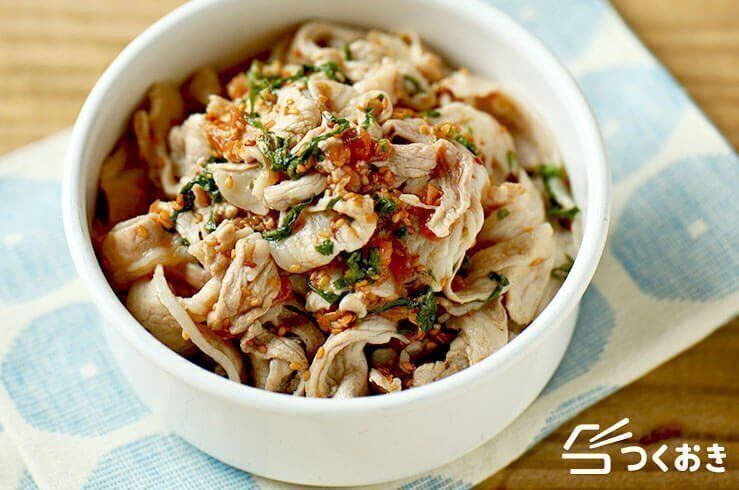 梅しそのさっぱりとした風味で箸がすすむ豚しゃぶレシピ。汁気がなく、保存がきくのでお弁当にも使いやすい一品です。そのままおかずとしてはもちろん、サンチュなどの葉物に巻いて食べるのもおすすめです。