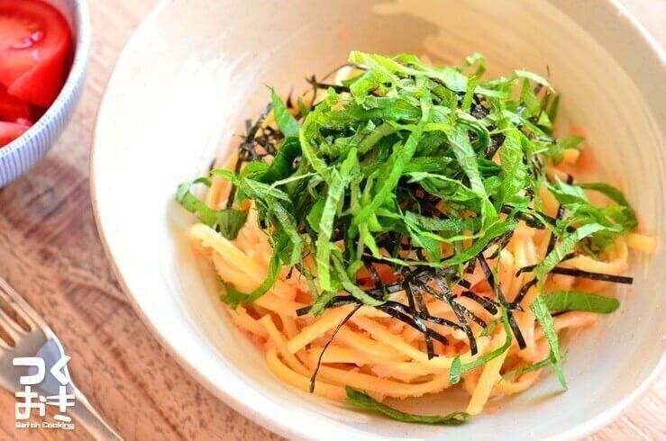 大葉やユズコショウの風味が効いた、大葉とささ身のマヨパスタのレシピです。電子レンジも活用した和えるタイプのパスタなので、手軽にトライしやすいのでは?マヨネーズのコクでするするっと食べられそう。和食のメインにいかがでしょうか。