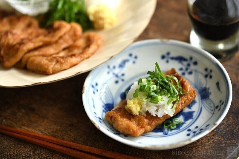 薬味をたっぷりと楽しみたいときにおすすめのレシピ。甘辛く煮た油揚げで、大葉やみょうが、大根おろしなどの薬味を巻いて食べます。巻く薬味はなんでもOK!好きな薬味を好きなだけ巻いてくださいね。