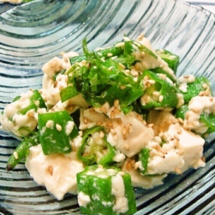 さっぱりと食べることができる、お豆腐を使ったサラダです。ごま油をベースにレモン汁や大葉をプラスしているので、風味もさわやか。ごまの香ばしさや、おくらの食感で食べごたえもバッチリです。