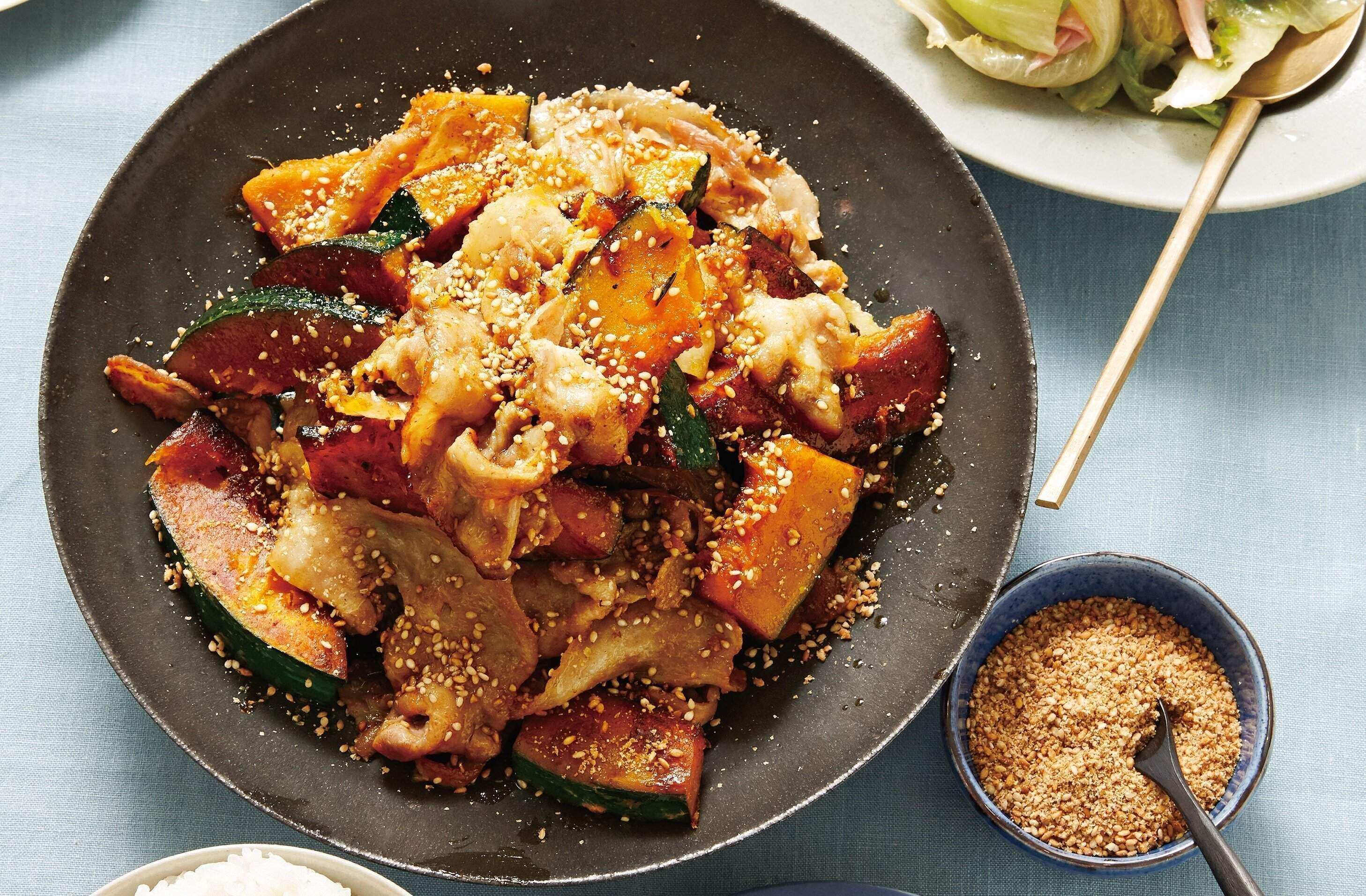 『サンキュ!』2020年6月号の「特売肉&魚で免疫力UPおかず」より豚かぼちゃ炒めごま酢あえをご紹介します。
