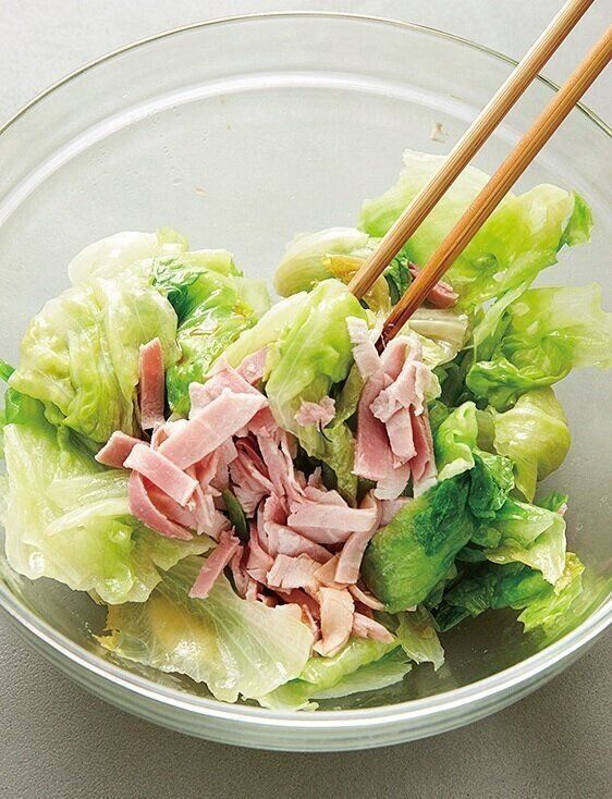 『サンキュ!』2020年6月号の「特売肉&魚で免疫力UPおかず」よりレタスとハムのレンジ蒸しをご紹介します。