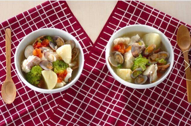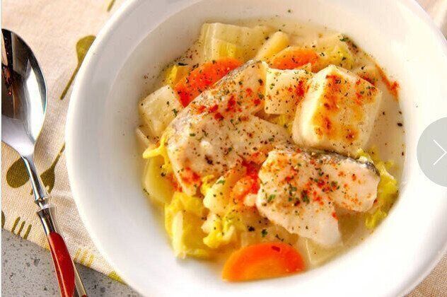 面倒な手間が多い印象の魚料理ですが、蒸し煮にすれば食材を一つの鍋に入れて作るだけなので手間もかからず簡単につくれます。色とりどりの野菜を使っているので見た目も鮮やかです。スープも白身魚と野菜のだしがしっかりきいた、ほっこりやさしい味のスープとなっています。
