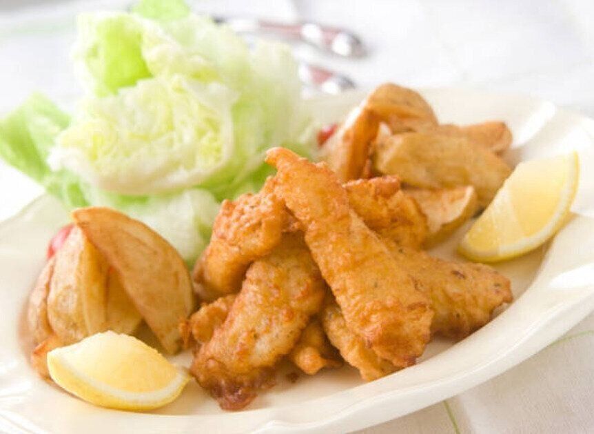 おやつ感覚で食べられる、イギリスの定番料理フィッシュアンドチップス。白身魚とホクホクのジャガイモのフライに、レモンをしぼっていただきます!サクサク食感を楽しむには、衣をたっぷりつけて揚げるのがおすすめです。