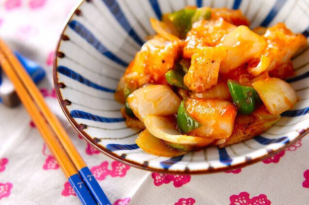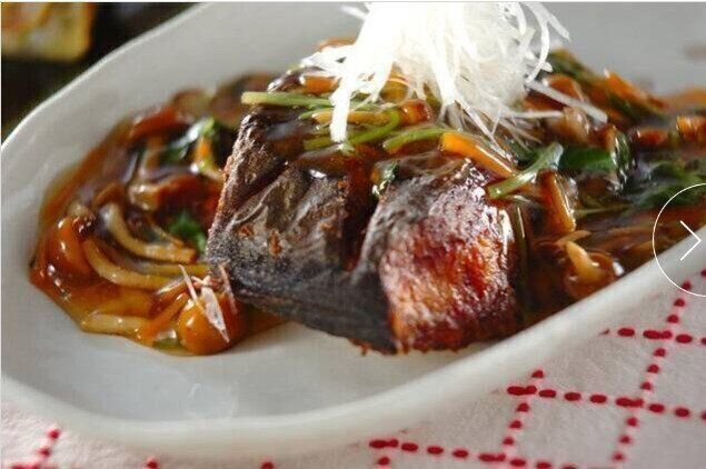 白身魚のほか、玉ネギ、白ネギ、ピーマンなど具だくさんの一品です。「甘酢あん」の味わいで、野菜もお魚もたっぷり食べられそうですね。揚げ焼きにした白身魚の食感も楽しめそうです。
