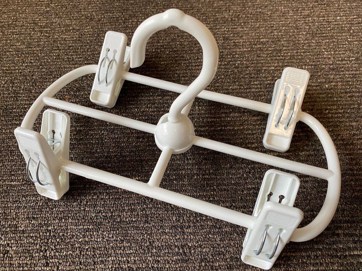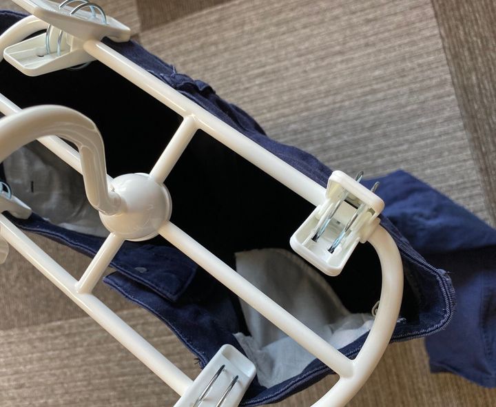 こちらはパンツをかけるときに使える乾きやすい構造のハンガーです。4つピンチで留めることによって中に空気が通りやすいから乾くのも早い!