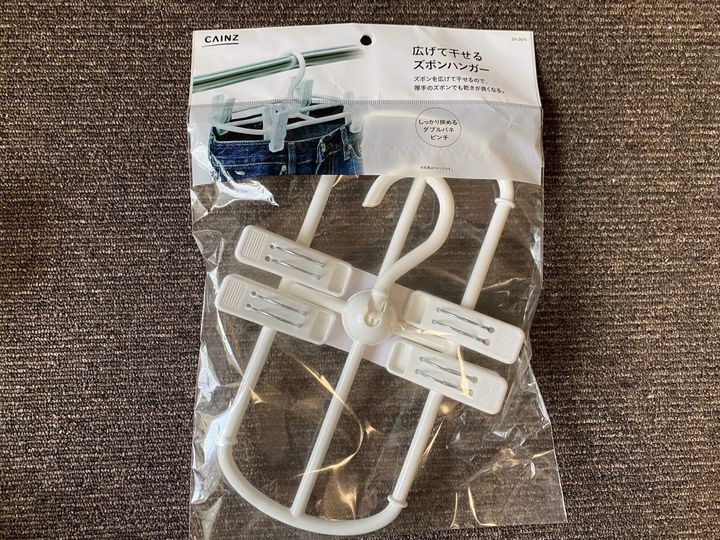 洗剤とあわせておすすめしたいのが、「広げて干せるズボンハンガー」(税込198円)です。