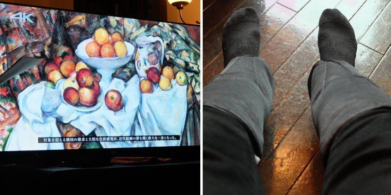 巨匠たちの作品が並ぶ「フィリップス・コレクション展」は、言うまでもなく芸術的な体験を我々に提供してくれます。そして、この日体験会で用意された家電は、パナソニック「ビエラ」の最新機種「4K有機ELテレビ FZ950シリーズ」と、エアーマッサージャー「コードレス レッグリフレ」。有機ELを搭載した「ビエラ」の美しさはまさに芸術的、「コードレス レッグリフレ」のリラックス効果は、芸術作品に触れたときの癒しに通じるものがあるわけです……たぶん。
