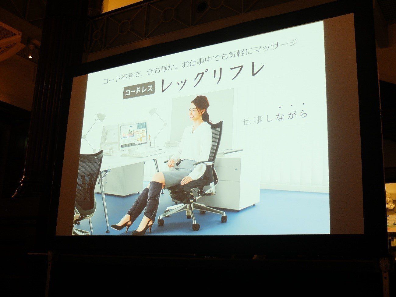 もうひとつの体験アイテム、エアーマッサージャー「コードレス レッグリフレ」もじつに芸術的な存在でした。同商品は2015年に発売された「レッグリフレ」のコードレス版(リフレシリーズには腰やお尻をマッサージする「骨盤おしりリフレ」もあるそうです)。