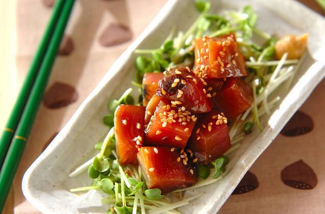 漬けカツオはシンプルながら、カツオのおいしさを引き立てるレシピです。忙しいときや暑い季節にもぴったりの、さっとつくれる一品です。