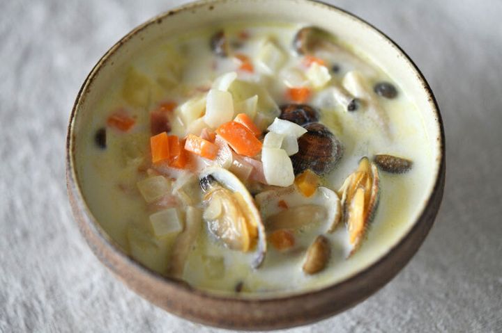 あさりのおすすめレシピ2:あさりとたっぷり野菜のクラムチャウダー