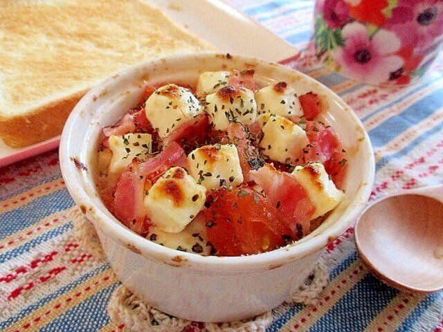 朝食にあと一品!トマトと豆腐の簡単ココット♪