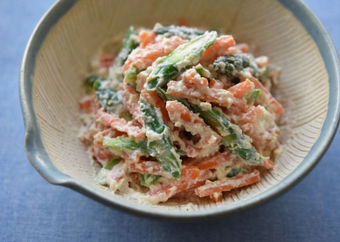 20分以下でつくれる、さっぱりおいしい白和えのレシピ。アスパラとにんじんの味わい・食感も楽しめて、食卓に彩りを添える一品です。水っぽくならないよう、和えてからすぐ食べるのがおすすめですよ!