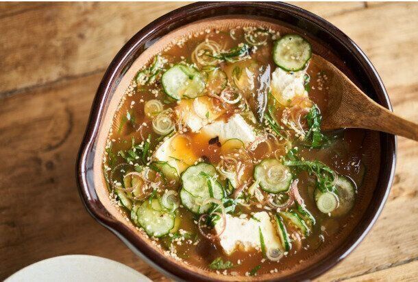 暑い季節にぴったりな、豆腐をたっぷりつかった冷や汁のレシピです。豆腐はそのまま加えず、ひと手間加えて水切りすることで、冷や汁が水っぽくならず、食べ応えもアップします。