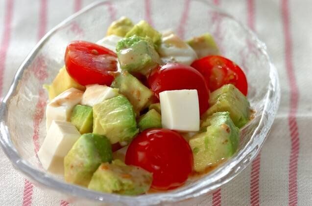 豆腐とアボカドをごまドレッシングに和えたレシピです。栄養満点のサラダで、お好きな野菜をプラスしても◎。いろどりもよく、すぐにつくれるので一品たりない日のメニューにも大活躍しそうですね。