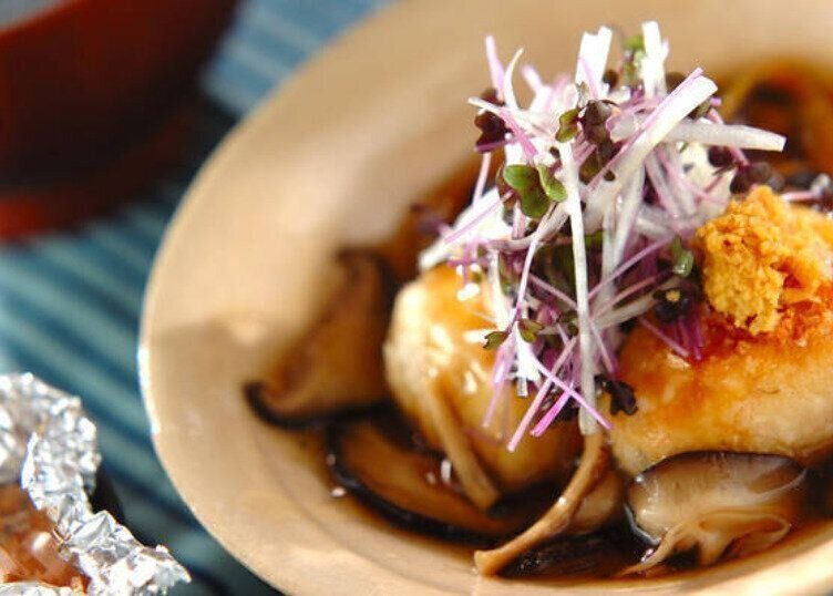 ぷるぷる食感の豆腐がたまらない、人気の揚げ出し豆腐。すりおろししょうがのさっぱりとした風味、あんかけだしとの相性もよく、和食の副菜にぴったりのメニューです!しいたけやねぎ、にんじんもいっしょにたっぷりのだしをかけていただきます!