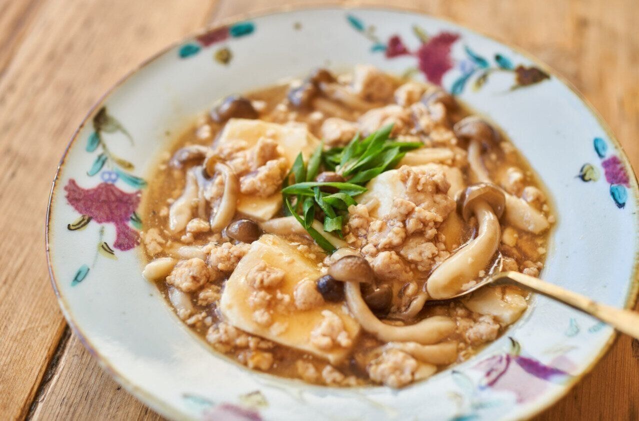 手早くつくれて、ホッとするやさしい味わいのきのこ入りあんかけ豆腐のレシピです。鶏ひき肉と豆腐の組み合わせでさっぱりと食べられて、仕上げのねぎもアクセントに。ご飯のおともにはもちろん、うどんにかけてもおいしいですよ。