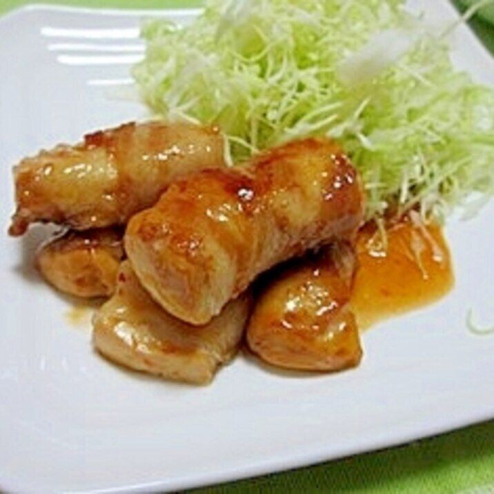豆腐を豚バラ肉で巻いた、肉巻きのレシピです。トウバンジャンを使ったピリ辛の照り焼き風味で、ご飯が進みます。調理時間10分ほどでつくれて、お財布にも優しいのがうれしいですね。