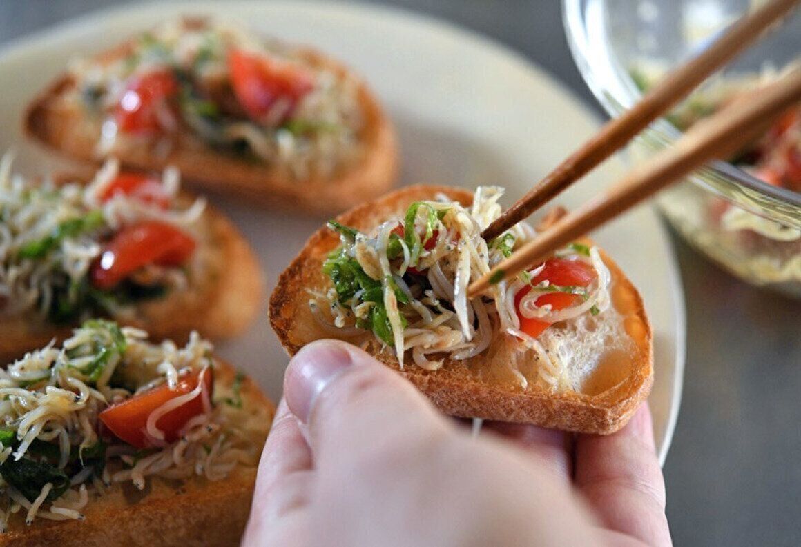 シラスと青ネギのブルスケッタ